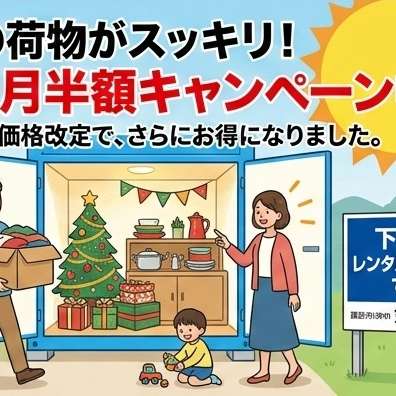 諏訪市中洲にトランクルーム・レンタル収納ボックス【下金子レンタルボックス】ですが、現在、5タイプの区画を募集しており、【6ヶ月賃料半額キャンペーン】を実施中です!。キャンペーン期間中は、①【1.3帖・